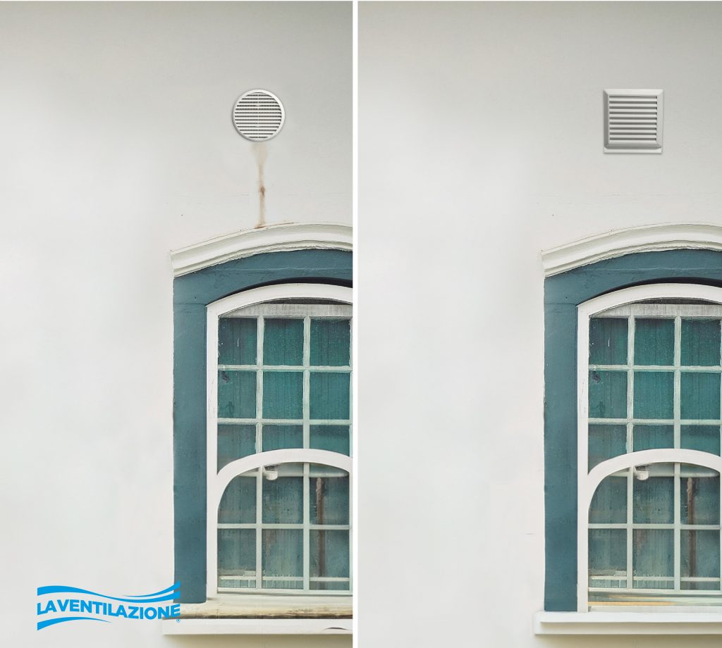 Větrací mřížky fasádní s rámečkem s odkapem kondenzátu.